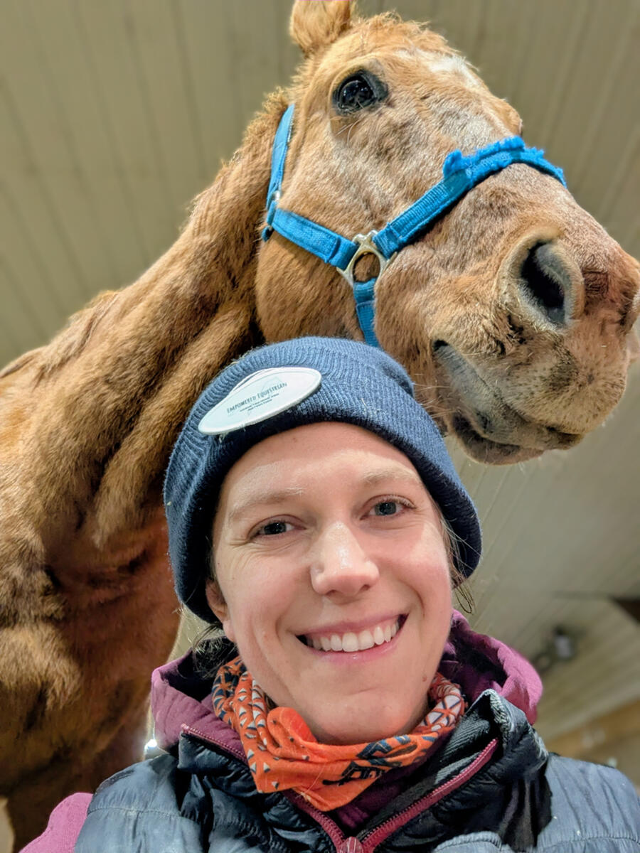 I have over 20 years of experience working with horses and more than five years of teaching riders. I’m a PATH certified therapeutic riding instructor with a background in zoology, animal training and behavior, natural horsemanship, and early childhood education.I’ve worked across disciplines from Western pleasure and rodeo to dressage and jumping, and I specialize in helping riders understand how their body influences communication, movement, and connection with their horse.